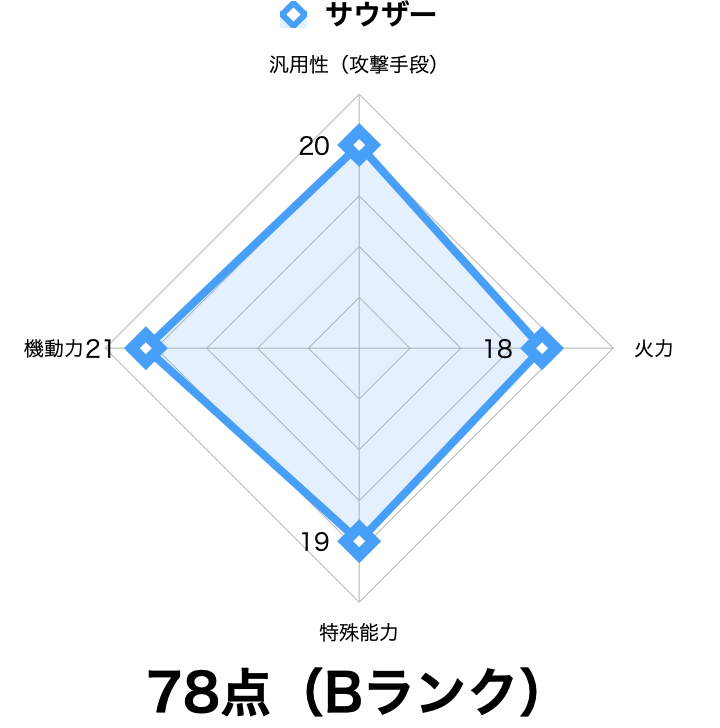 全体的にバランス良く強いタイプであり、同水準の強さと考えられる「仮面ライダー迅」とは少し向きが異なる強さでしょうか。ただしサウザーの強さは専用武器に依存する側面を考慮すると、若干脆さを感じるのも事実です。