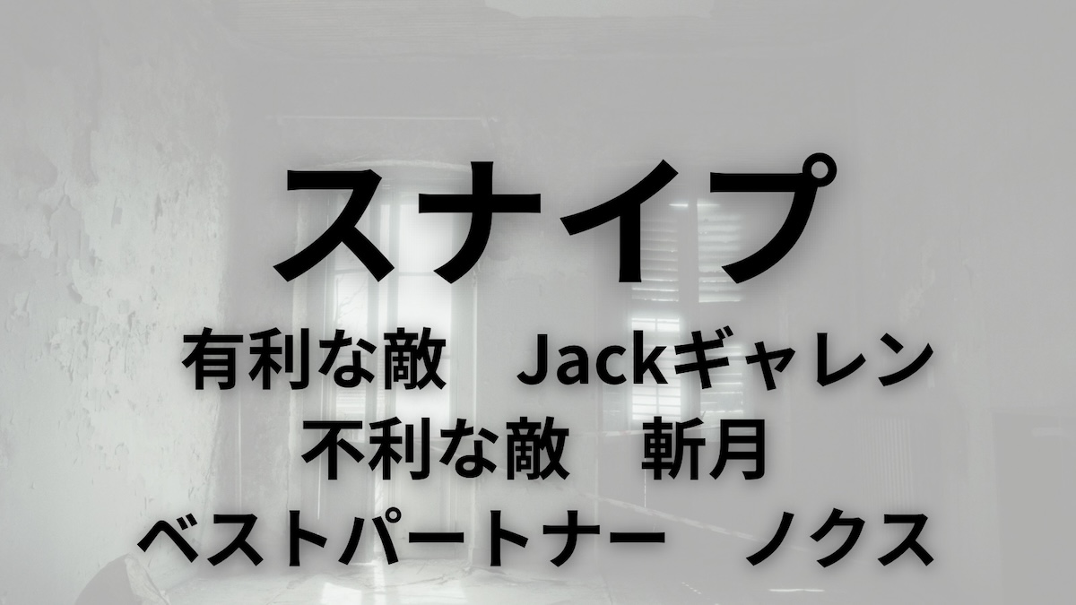 スナイプは「ステージセレクト機能」によって自身にとって有利な環境で戦う事ができ、例えば「水辺で強いキャラ」に対して「水のない環境で戦う」選択ができます。