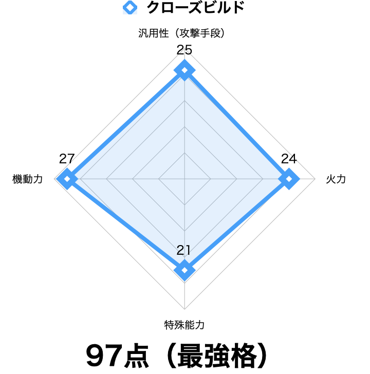 この時点で言う事ないですが、クローズビルド自体にも「運動速度2倍」があるため、もはや過剰な印象を受けます。27点。