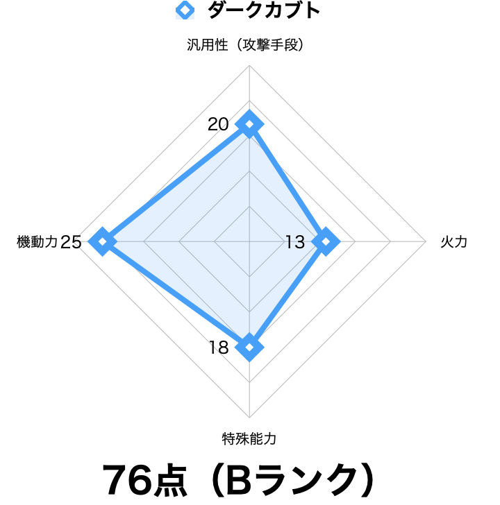 実数値は「カブト」と互角です。必殺火力も含めて完全に同じ設定となっています。