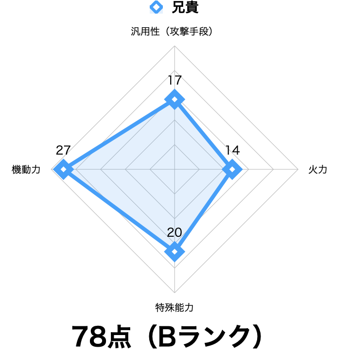 性能自体はパンチホッパーと同じでシンプルですが、兄貴に関しては結構強いんじゃないかと思います。
