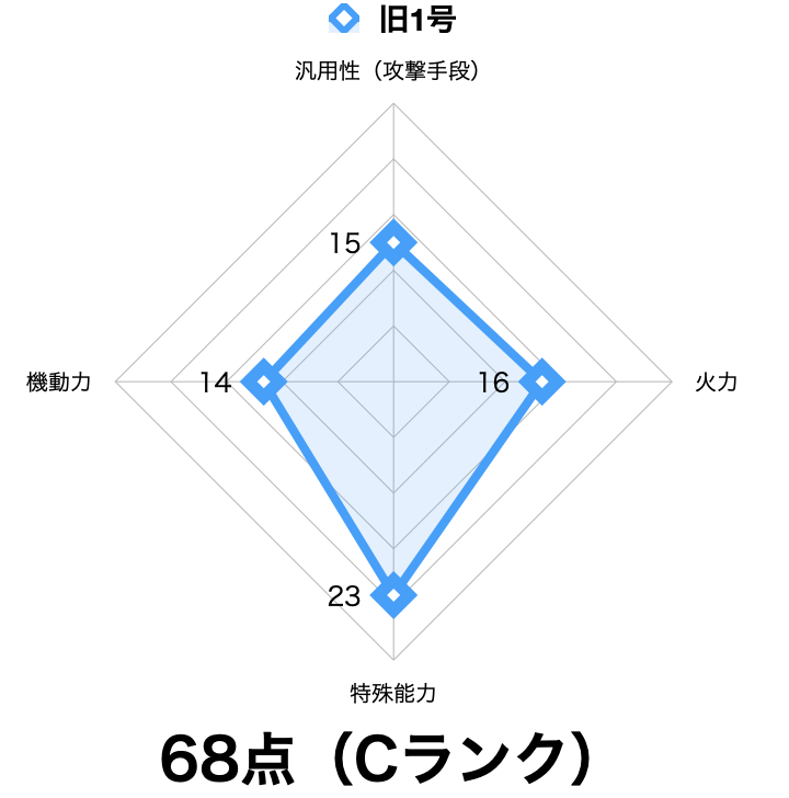 旧1号は「パワーでゴリ押し」というタイプではなく、どちらかというと「工夫して勝つ」タイプに近い印象があります。