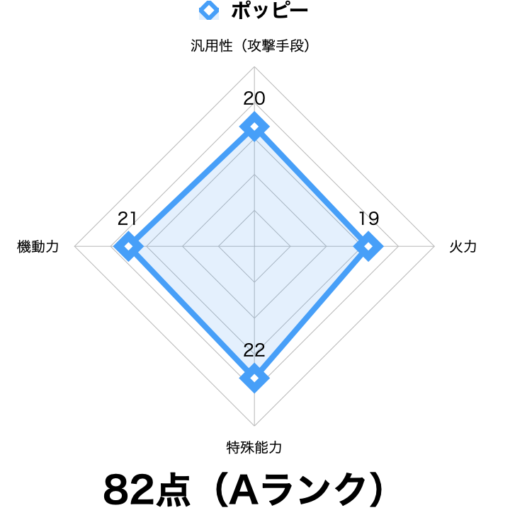 「パラド」「ブレイブ」に関しては更なる強化形態が後に登場しましたが、「スナイプ」に関してはLv50で戦い抜いており、彼と同格の数値を誇る時点でポッピーの実力も担保されると感じます。