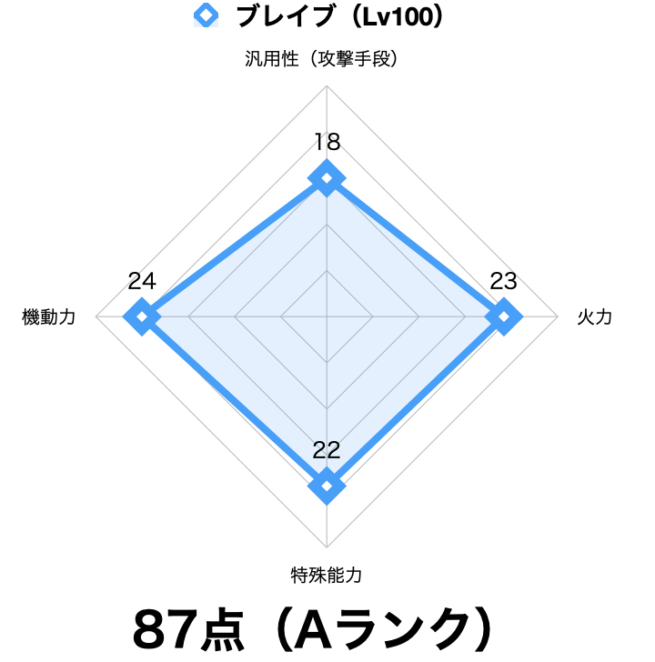 ブレイブ(Lv100)の独自要素は③~⑦ですが、全体的に「防御重視」な印象を受けます。